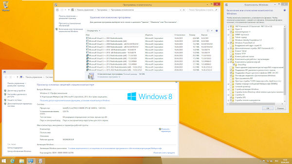 Windows 8.1, включающая в себя 10 русских и 10 английских редакций x86/x64, с обновлениями по 04.2023, дополнительными системными библиотеками (C++ Redistributable Package), с возможностью выбора опций установки и наличием MSDaRT. А также инсталляции Windows c уже предустановленным (или без - по выбору) Word, Excel, PowerPoint, Access, Publisher, Outlook и OneNote.